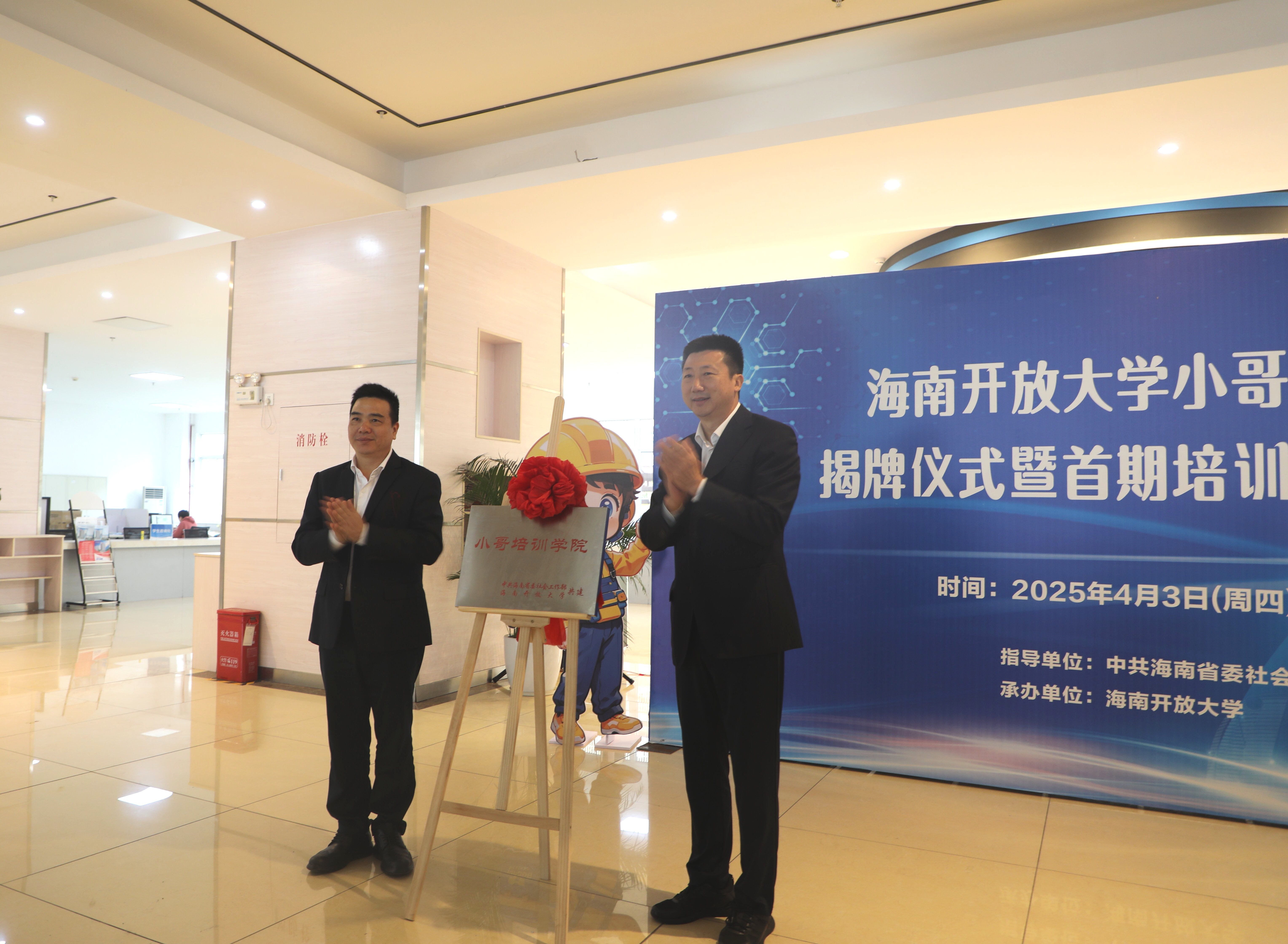 4月3日,海南开放大学小哥培训学院揭牌仪式暨首期培训班开班仪式在该校海甸校区举行。来自海口的快递员、外卖小哥及网约车司机等70余人参加仪式及培训。