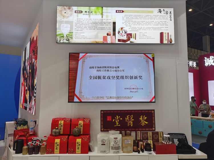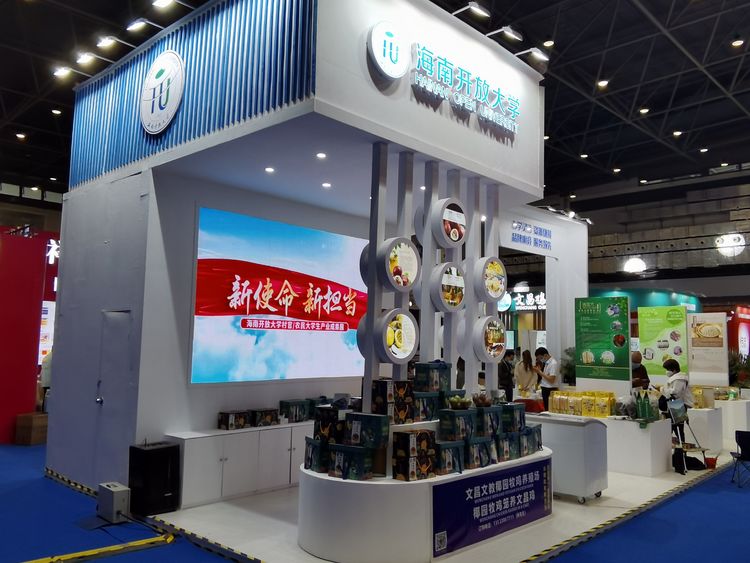 海南开放大学村官/农民大学生创业成果在1号馆品牌农产品展区精彩亮相,现场展示了来自全省18个市县开大学子的创业成果。包含椰园牧鸡牌文昌鸡、原生态椰子油、海南黎王颐养贴、钦蜜9号百香果、山兰米、海南白胡椒等特色农产品,吸引了大批参展观众驻足参观。